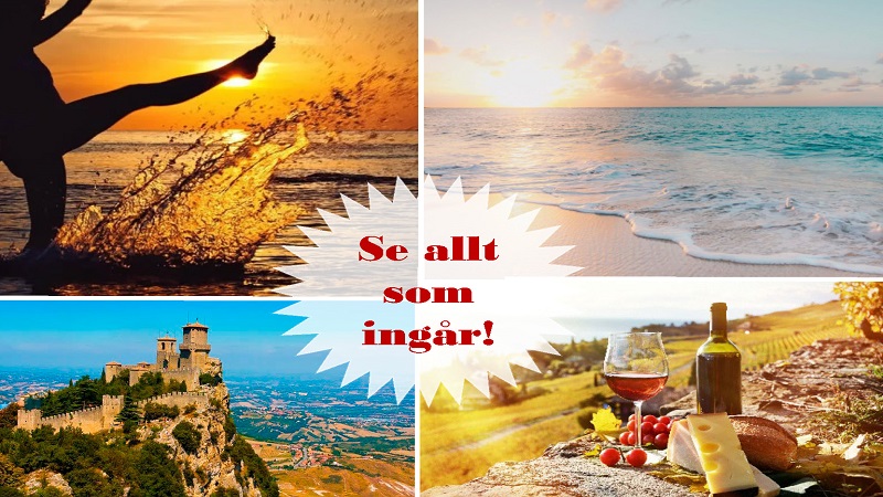| 12/6-2026 fredag Visa tidtabellen | Smaka på Italien & Rimini Pangpris -Se allt som ingår! | Mer än 8 | 15 495:-15 995:- | BokaVisa tidtabellen |